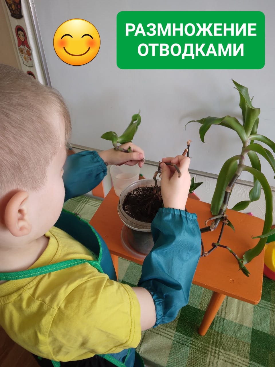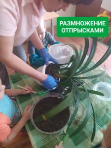 В старшей группе «Сказка» педагоги уделяют большое внимание экологическому воспитанию детей. Проводят экспериментально-исследовательскую работу по размножению и выращиванию комнатных растений. В процессе такой деятельности дети знакомятся с приемами пересадки и размножения растений, познают природу, получают необходимые знания, умения и навыки. У них формируется доброе и заботливое отношение к окружающему миру.