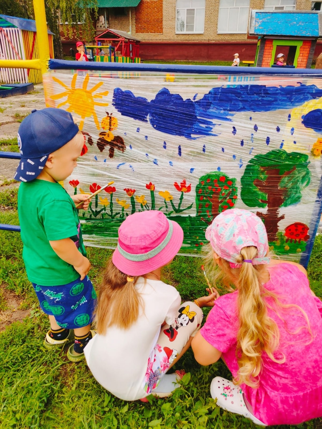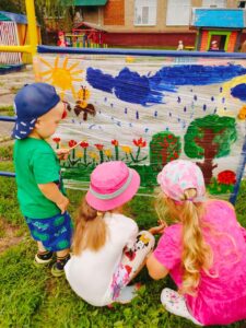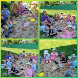Игровой пикник на прогулке — это прекрасная возможность для детей весело провести время на свежем воздухе, насладиться красотой природы и укрепить дружеские связи. На прогулку был вынесен инвентарь для игровой деятельности. Девчонки и мальчики расположились на зелёном лужке, подышали свежим воздухом, приняли солнечные ванны и с удовольствием пили сок! Игровой пикник на свежем воздухе у воспитанников группы » Лесовичок » и » Дружная семейка » вызвал максимум впечатлений и радости!