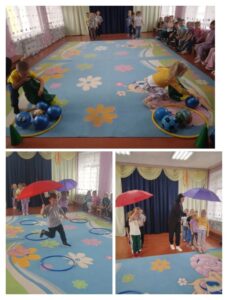 В нашем детском саду прошло спортивно — музыкальное развлечение «Осенние старты», которое стало праздником спорта и здоровья. Дети успешно справились со всеми предложенными заданиями: собрали овощи и фрукты, поиграли под дождём, исполнили задорные песни. Оставив массу положительных эмоций и впечатлений, праздник получился захватывающим и забавным!