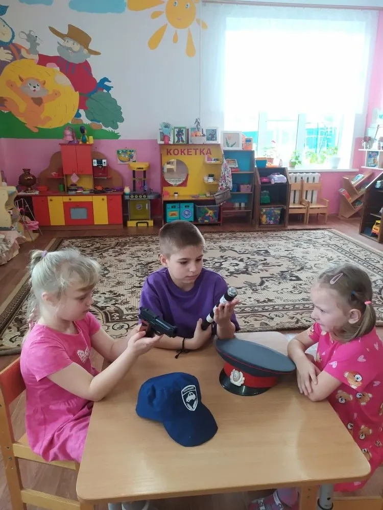В подготовительной группе»Солнышко » прошла тематическая беседа»Моя полиция меня бережёт «. Дети узнали об истории возникновения праздника, о профессиях людей, работающих в полиции — следователи, участковые, эксперты. Выяснили, что для службы в полиции нужно быть сильным, внимательным, метким, ловким. Для этого провели эстафету — соревнование «Подготовка полицейских». Ребята с увлечением выполняли задания, стараясь победить. Дети узнали много полезного о профессии полицейского, осознали её значимость и необходимость в жизни каждого человека.