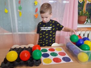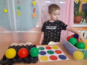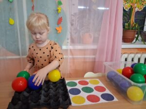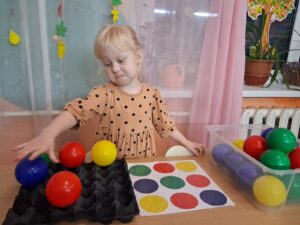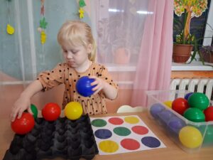 Эта игра помогает развивать у детей моторику, внимание, логическое мышление и усидчивость. Выполняя задачу по образцу, дети учатся следовать инструкциям, развивают координацию движений и улучшают навыки восприятия форм и цветов.