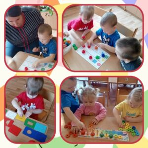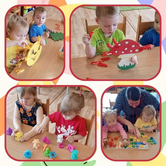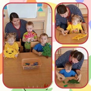 Сенсорное развитие в детском саду направлено на формирование у детей представлений об окружающем мире и предметах. Важно, чтобы ребёнок мог не только различать и определять предметы по их свойствам, но и умел определить эти знания на других объекта. Воспитанники первой младшей группы «Ягодка» учились соотносить плоскостную форму, раскладывать по образцу, находить похожую форму, играли с разноцветными прищепками.